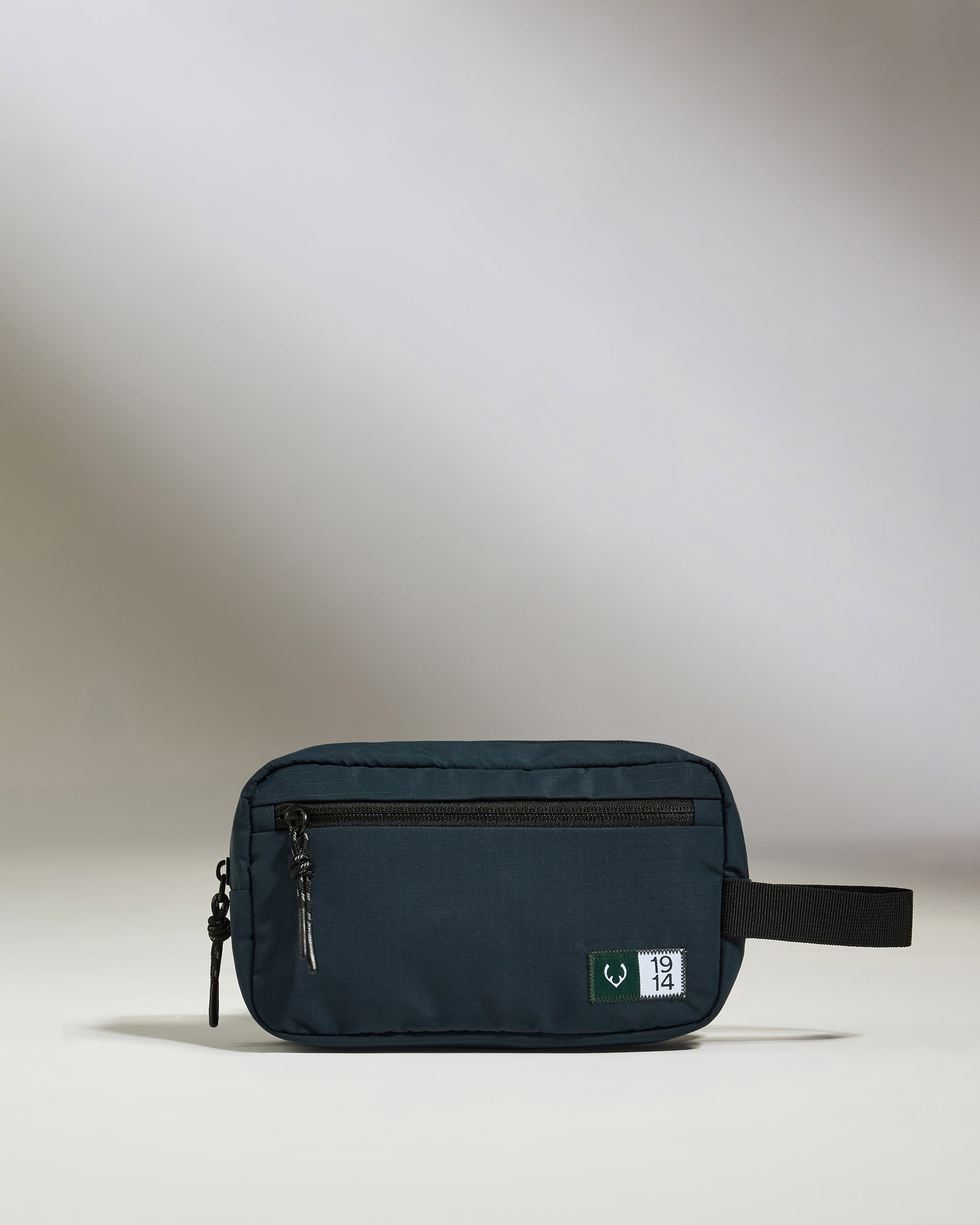 Made from durable 100% recycled ripstop fabric, the wide-opening main compartment offers easy access to essentials, while the internal water-repellent lining is simple to wipe clean in case of spillages. Inside, a full-length mesh pocket and two smaller compartments allows you to neatly separate toiletries, makeup, or grooming essentials. A front pocket keeps must-haves within easy reach, and the handy side strap doubles as a carry or hanging loop.