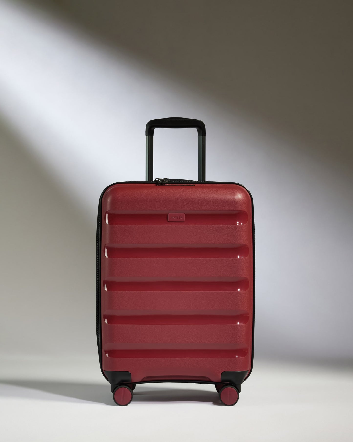 Airline-compliant and ideal for shorter stays, the Cabin suitcase fits neatly in overhead lockers. Glide easily with four double spinner wheels, adjust the telescopic handle to suit your stride, and keep everything secure with a TSA-approved lock.