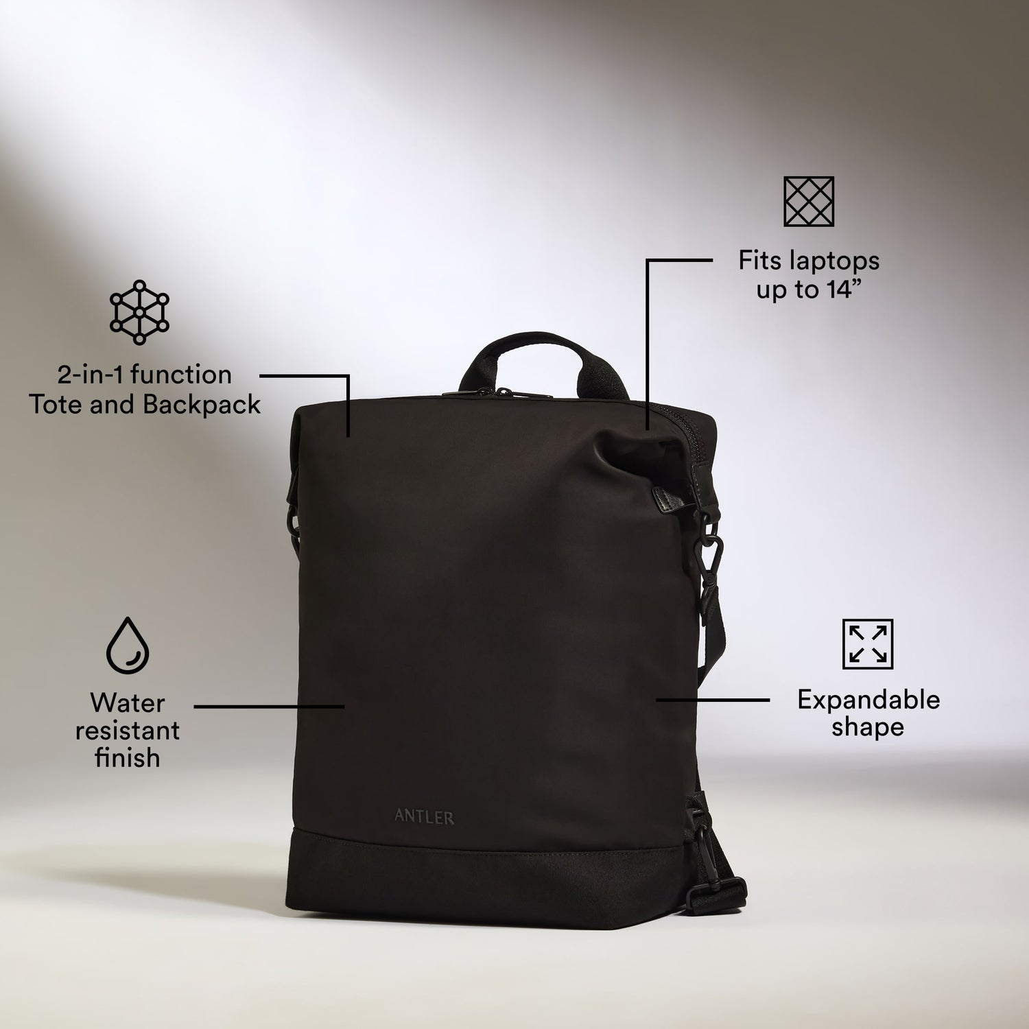 This innovative style switches from tote to backpack in seconds, so you can carry it your way, with ease. Padded shoulder straps tuck away discreetly, while a removable shoulder strap offers another way to wear as a tote bag. Inside, it fits laptops up to 14”, with dedicated space for a water bottle and other daily items. Made from 100% recycled, water-resistant fabric, it’s ideal for commutes, sightseeing, or weekend errands.