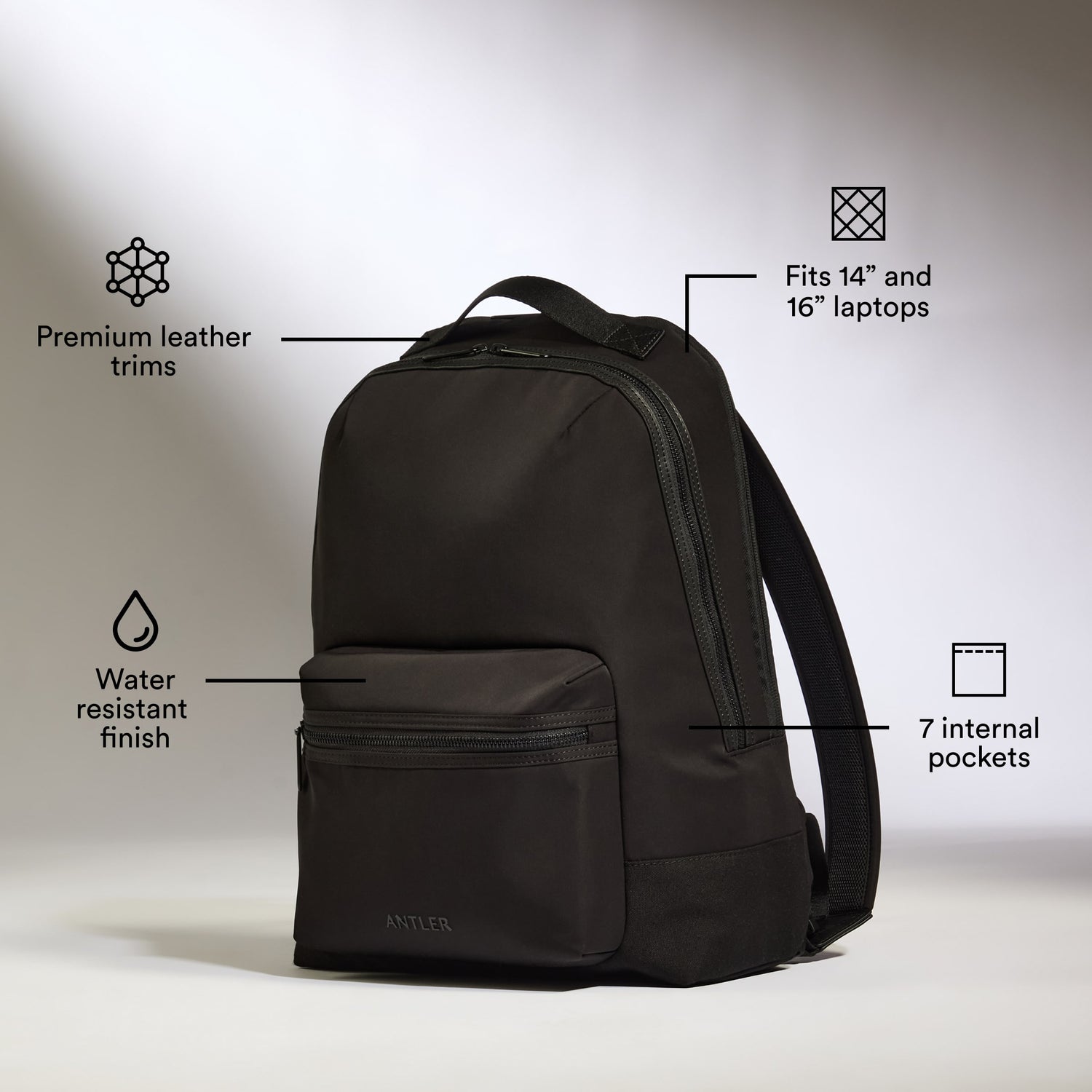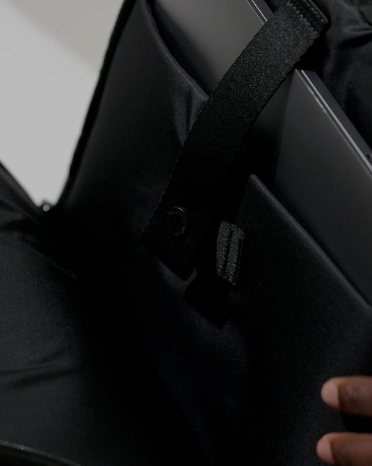Made from 100% recycled, water-resistant materials and finished with premium leather trims, the Icon Backpack is designed with structure and substance. Inside, a padded laptop compartment protects your tech, while seven internal pockets keep everything in place. Designed to fit 14” and 16” devices, it also features a breathable mesh on the back panel and underside of straps – ideal for daily commuting and energetic travel.