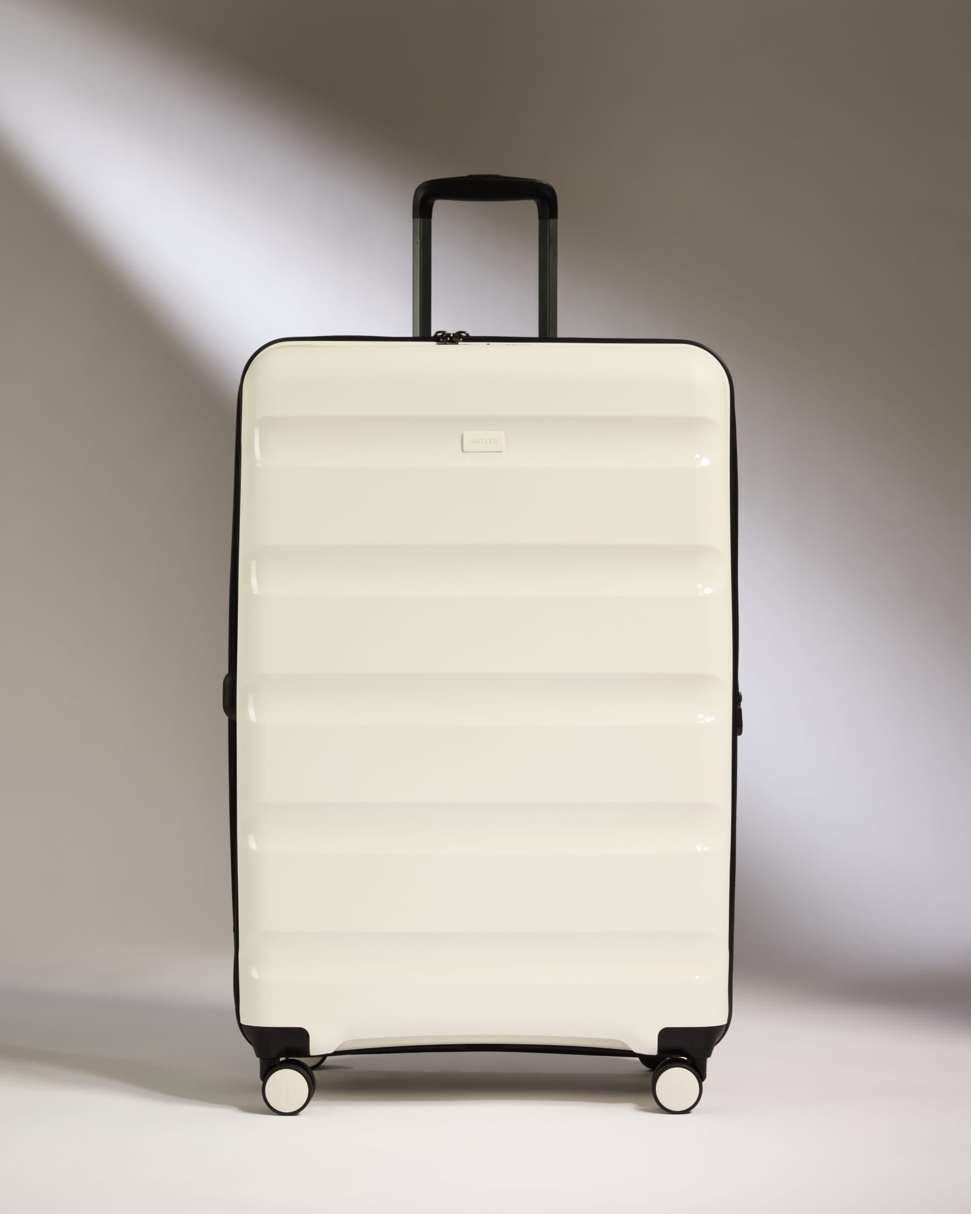 Introducing the Logo Stripe Large suitcase. Designed for easy travel, the lightweight polypropylene shell is tough enough for the bumps and knocks of transit, accented with glossy ‘Antler Stripes’ – just enough shine to stand out, not shout.