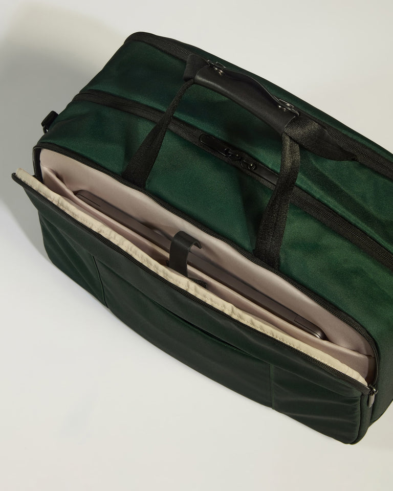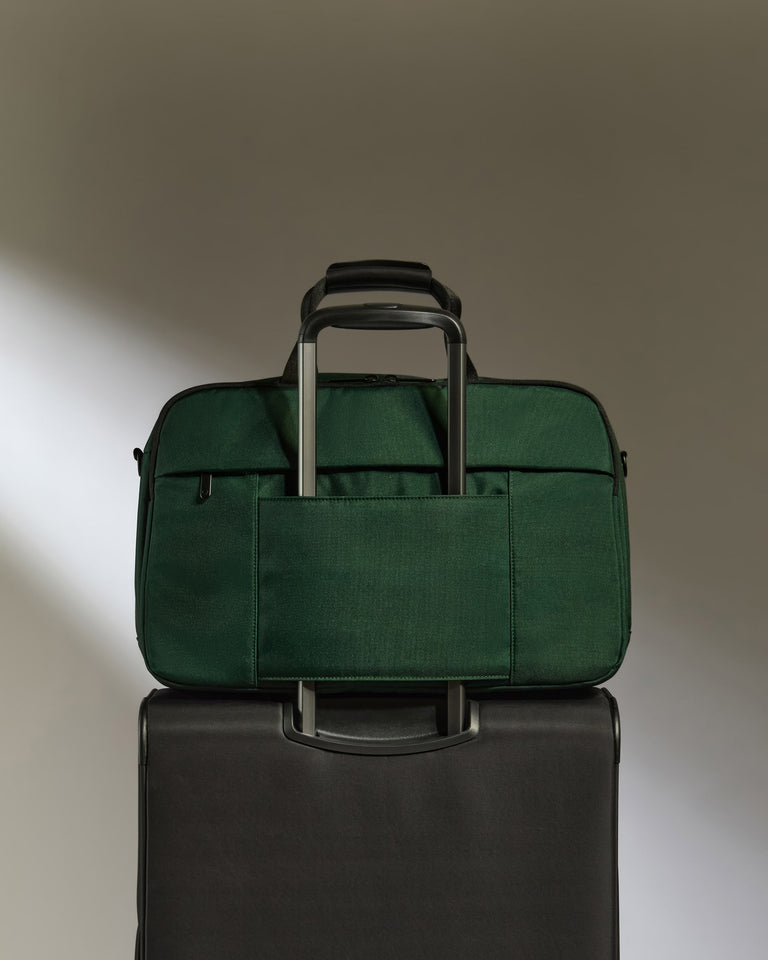 Made responsibly from 100% recycled polyester, the Urban Light Overnight offers a lightweight and spacious packing solution. Designed to meet underseat airline restrictions, it’s a convenient choice for your free on board bag. The Overnight adapts to your travel style with a leather comfort grip handle and a long strap for hands-free carrying. For added convenience, a back strap allows it to slide over a suitcase handle and sit securely on top, ensuring smooth navigation through airports and city streets.