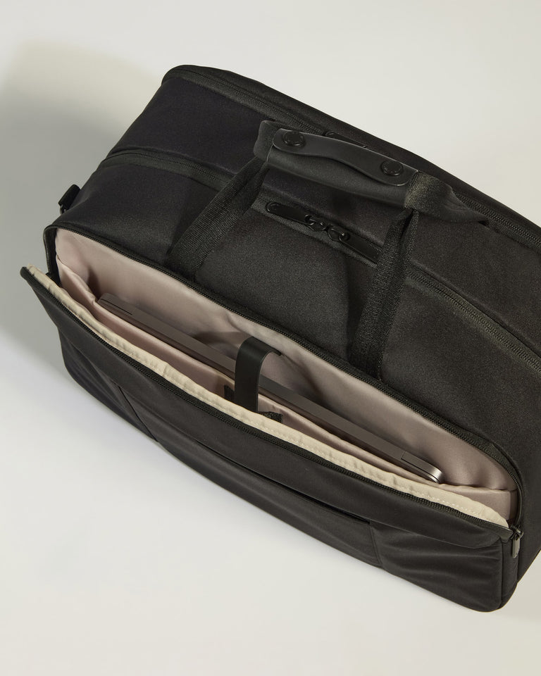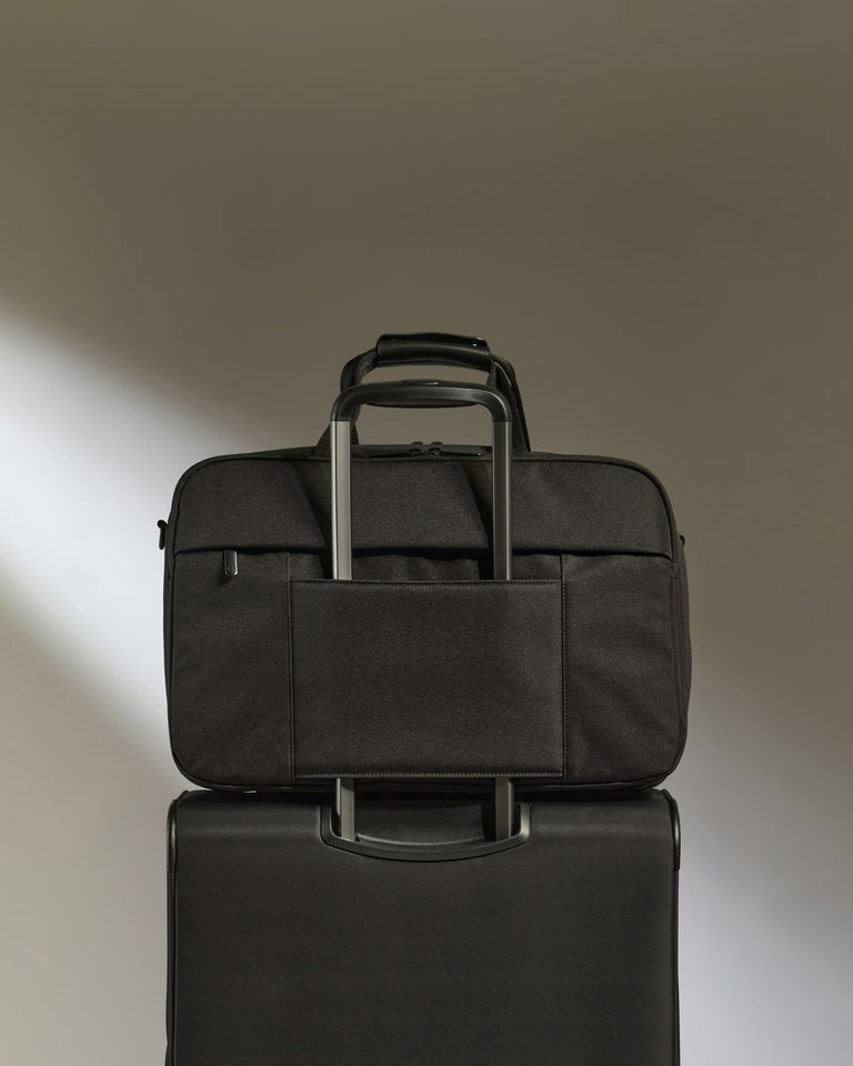 Made responsibly from 100% recycled polyester, the Urban Light Overnight offers a lightweight and spacious packing solution. Designed to meet underseat airline restrictions, it’s a convenient choice for your free on board bag. The Overnight adapts to your travel style with a leather comfort grip handle and a long strap for hands-free carrying. For added convenience, a back strap allows it to slide over a suitcase handle and sit securely on top, ensuring smooth navigation through airports and city streets.