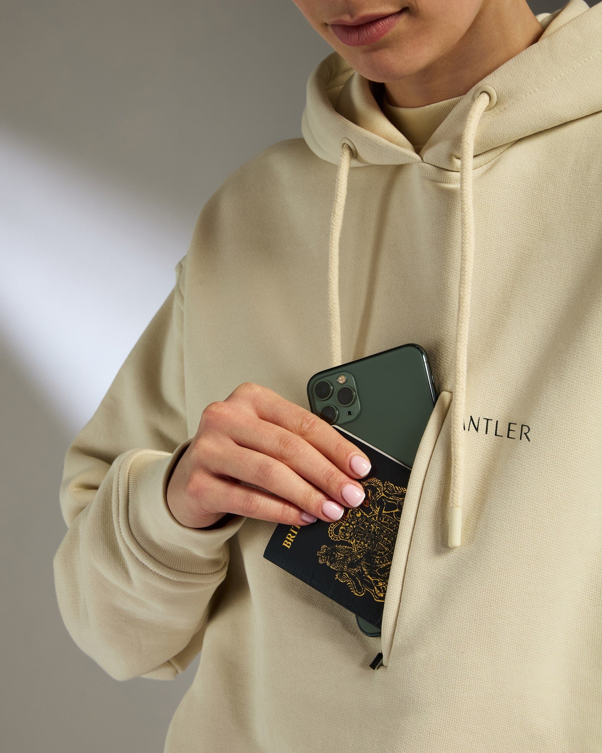 The oversized hood offers extra privacy, perfect for blocking out distractions or catching some shut-eye on a long-haul flight. A secure essentials pocket on the chest keeps your phone, passport, or headphones safe, while two kangaroo pockets keep hands warm and cosy.